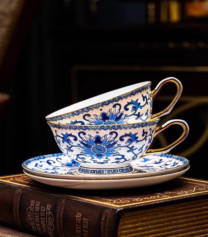 Chinese blue and white porcelain coffee mug – elegant handcrafted design with classic blue motifs. Perfect for daily use or as a unique gift. Durable ceramic, dishwasher safe.